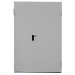 Drzwi przeciwpożarowe o wymiarze zewnętrznej szerokości ościeżnicy 1500 x 2070 mm w kolorze RAL 7038. Drzwi mają współczynnik przenikania ciepła U = 1,2 W/m²K, dzięki czemu nadają się do zastosowania wewnątrz i na zewnątrz budynków.